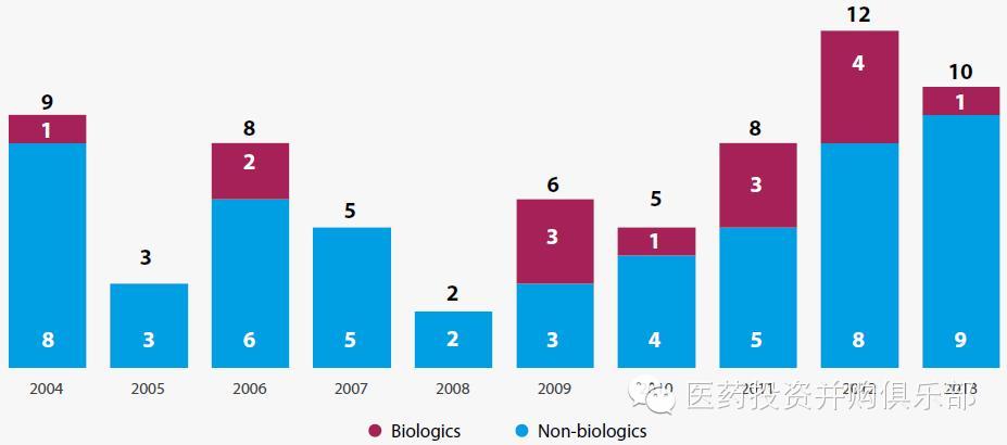 图5、2004-2013年全球抗肿瘤领域上市的新分子实体