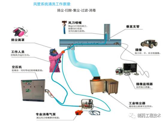 洁净室(厂房)是生物医药产业必备之关键设施。为了使洁净室内保持所需要的温度湿度、风速、压力和洁净度等参数,最常用的方法是向室内不断送入一定量经过处理的空气,以消除洁净室内外各种热湿干扰及尘埃、细菌污染。为获得送入洁净室具有一定状态的空气,就需要一整套设备对空气进行处理,并不断送入室内,又不断从室内排出一部分来,这一整套设备就构成了洁净空调系统。为了保证系统正常有效的运行,就需有必要的维护和清洗清洁。