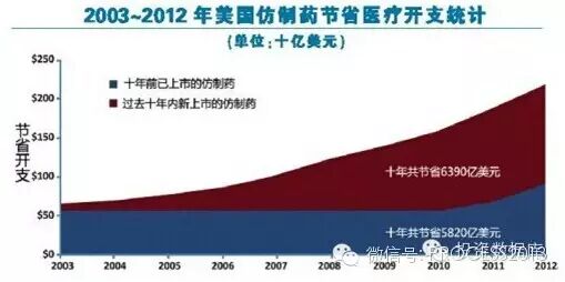 美国作为全球最发达的医药市场,在平衡专利药与仿制药方面虽不能说做得尽善尽美,但也当之无愧成为其他国家学习的典范。以药品数量计算,其仿制药占比近年来趋于稳定,2008~2013年,仿制药在美国市场占比在90%上下波动。仅2012年一年,仿制药的使用为美国节省了约2170亿美元的医疗开支;2003~2012年的十年间,仿制药的使用为美国节省了超过12000亿美元的医疗开支。受专利到期影响,预计2014~2016年,美国平均每年会有400亿美元的专利药销售额转化为仿制药。
